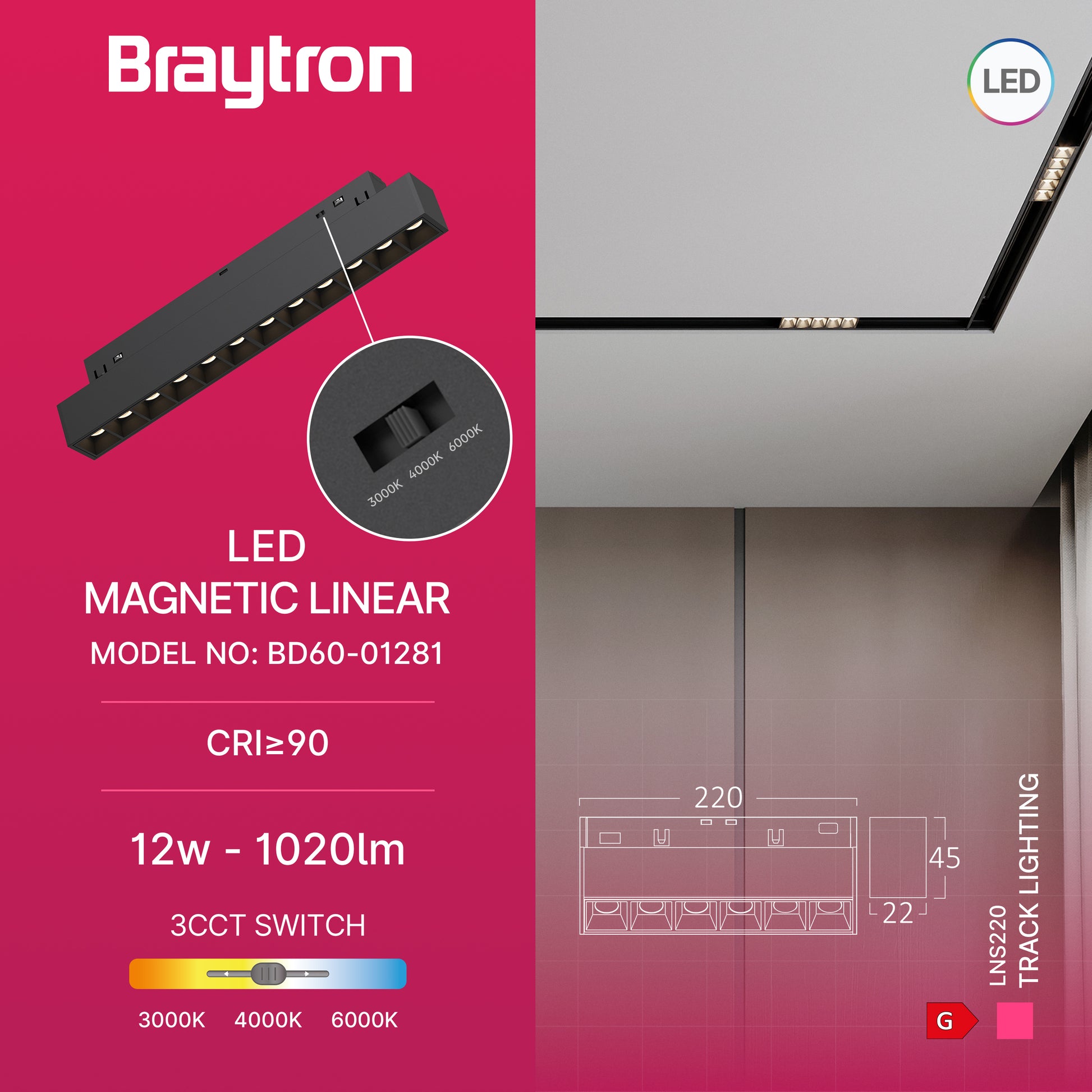 BRY-LNS220-12W-48VDC-3U1-CRNA-MAG.LINEARNA SVETILJKA