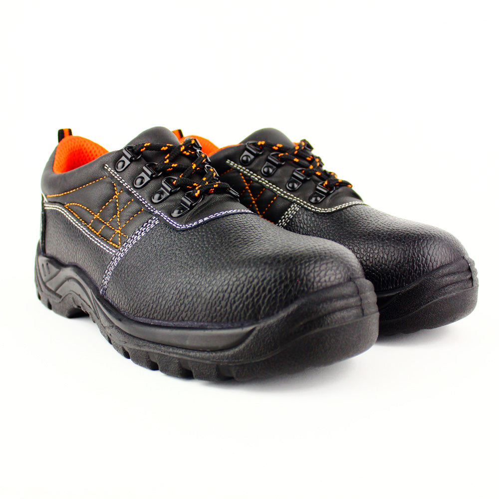 Description: Low safety shoes in black leather with padded collar for more protection and more comfort;
