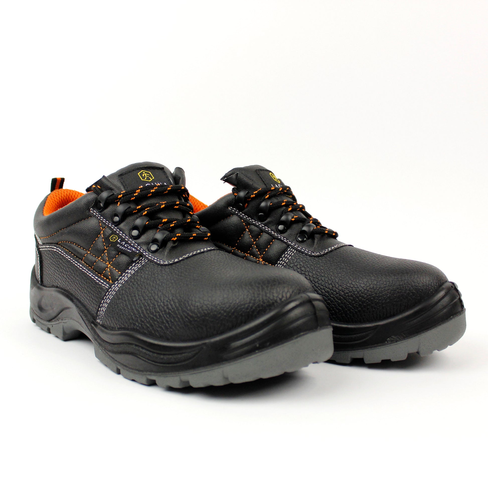 Description: Low safety shoes in black leather with padded collar for more protection and more comfort;