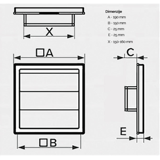 190 x 190 mm