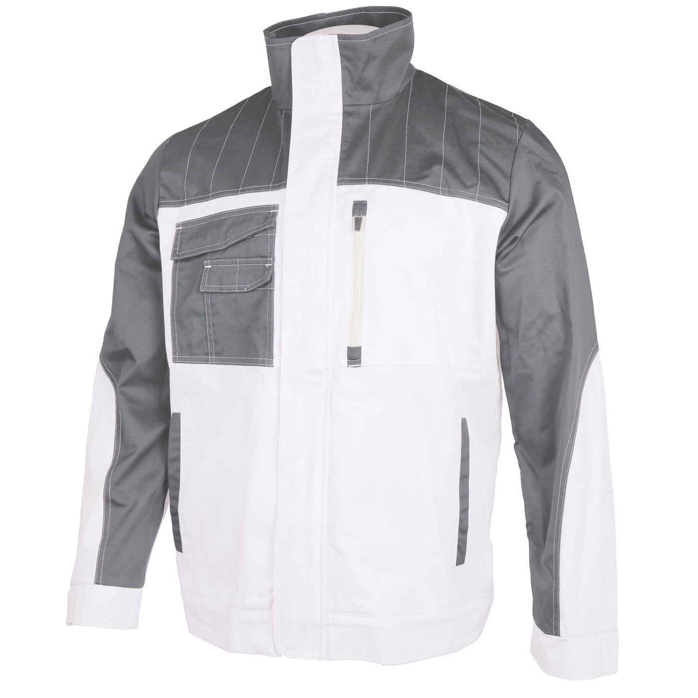 Radna jakna sa više funkcionalnih džepova. Zatvara se skrivenim patent zatvaračem s čičak trakom. Rukavi se zatežu s čičak trakom sa svake strane radi boljeg pristajanja. Kroj je klasičan i dobro pristaje svima.;