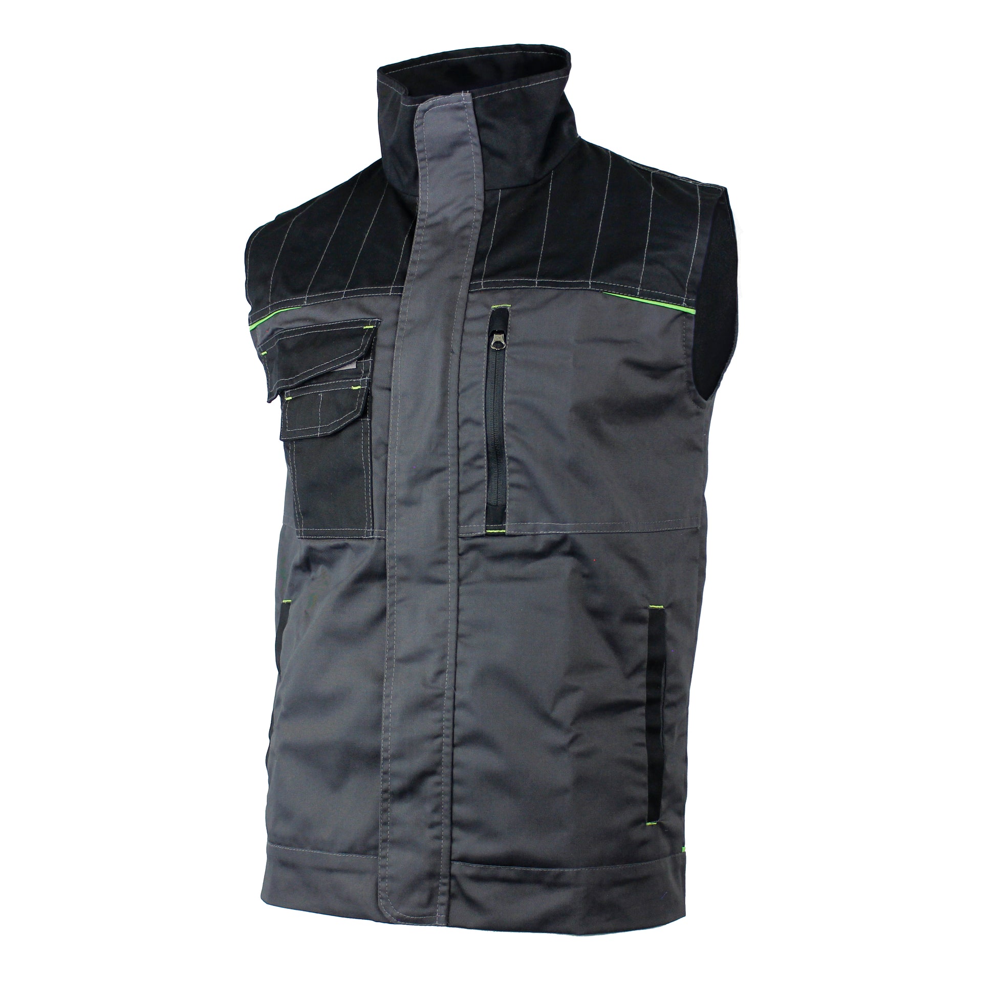 Work gilet with many functional pockets and classic collar. Opening with concealed zipper and Velcro tape. It’s a regular fit with standard cut for classic shape.;